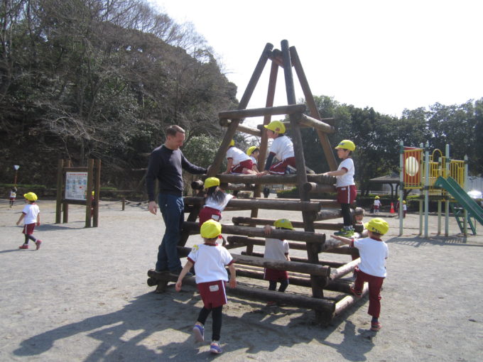 上座公園へ、年少組最後の遠足へ行きました。