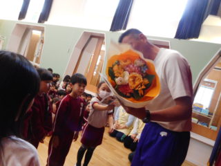 プレゼントと花束をもらい喜んでいる先生たちを見て、子どもたちの表情も自然と笑顔になっていました。