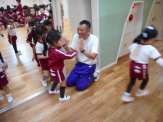 最後は、一人ひとりさよならタッチをしました。中にはお別れを嫌がり、涙ぐんだり、抱きついて離れないお友だちもいました。