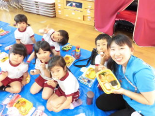 この日を楽しみにしていた子どもたち。年長組のお友だちと年中組のお友だちでペアを組み、一緒に給食を食べました。