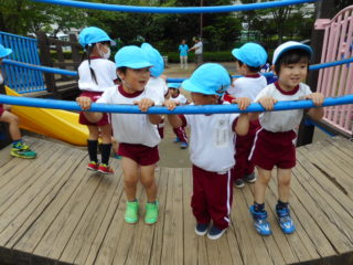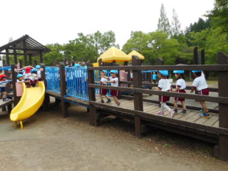 5月15日に年少2組、17日に年少1組で七井戸公園へ遠足に行ってきました。子どもたちにとって初めての遠足に、朝からドキドキ、ワクワクがとまらない子どもたちでした。