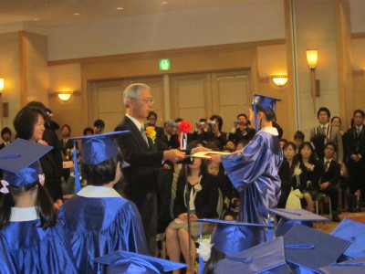 一人一人 名前を呼ばれ、園長先生から卒園証書を受け取ります。