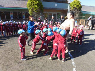 時間が過ぎるのはとても早く、気付けばおすもうさんとさよならの時間。「また来年も来てね!」と、みんなでお見送りをしました。