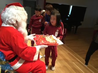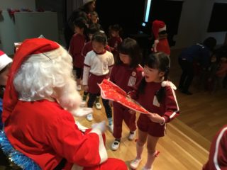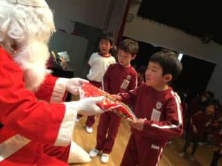 最後は、サンタさんからプレゼントをもらい「Thank you!!」と、きちんとお礼を言うことができました。