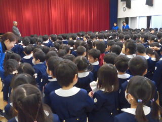 始業式では園長先生のお話を集中して聞いていました。
