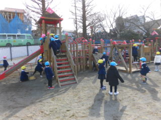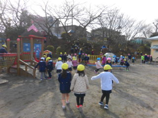 元気よくあいさつをしていました。寒さに負けす外でも元気に遊んでいます。