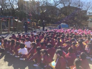 今日は消防署の方の指導のもと、火災を想定した避難訓練を行いました。