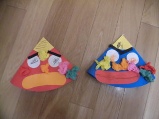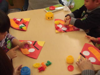 眉毛の貼る角度や、口の向きで様々な表情の鬼になり、どの鬼も個性的な仕上がりになりました。