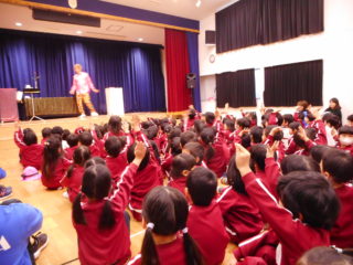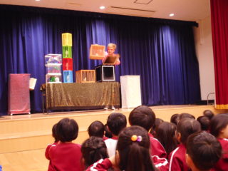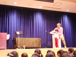 今日は、父母の会主催の観劇会「アンディー先生のマジックショー」が行われました。