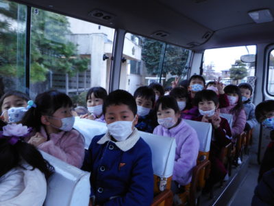 今日は年長組で上志津小学校へ行き、一年生と交流会をしてきました。バスの中では、「小学校ってどんなところだろう!」「どんなことするのかな?」と楽しみにしていました。