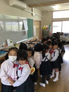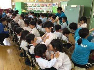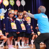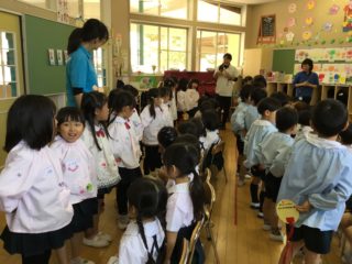 年長さんは幼稚園の中で“最年長”という自覚をもって自分たちより小さいお友だちに優しくしてくれました。年少、年中さんは、少し恥ずかしそうにする子もいましたが、優しいお兄さん、お姉さんのおかげでだんだんと緊張もほぐれ、楽しく過ごしていました。最後にはペンダントのプレゼントをもらい、うれしそうにしていました。