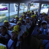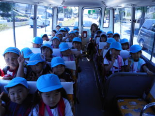 「いつ遠足に行くの?」「遊具いっぱいあるんでしょ!」と、遠足に行くことを心待ちにしていた子どもたち。笑顔いっぱいで出発しました。