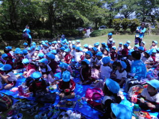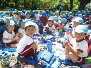 友達とお話をしながら楽しく食べることができました。みんなで食べるお弁当は、とても美味しかったですね!