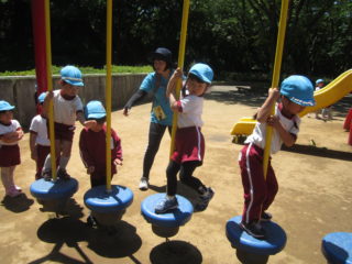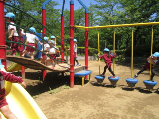 面白い遊具がたくさんあり、子どもたちは大盛り上がり!!順番に並んでいたり、友達を遊びに誘ったりと良い姿をたくさん見ることができました。