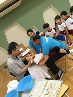 年長組さんは、一人ひとり先生に「お願いします」「ありがとうございました」の挨拶をして、静かに受けることができました。
