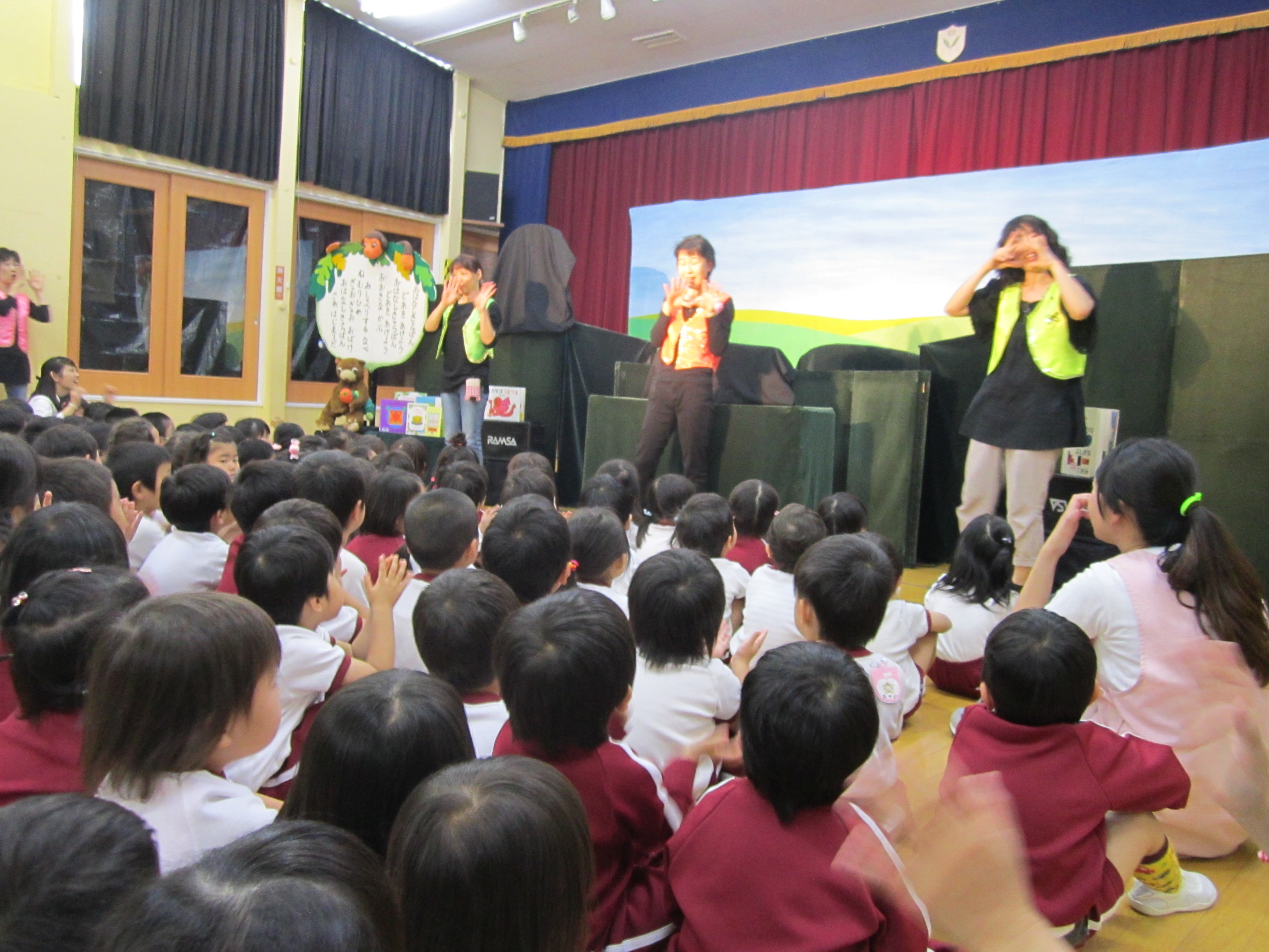 おはなしきゃらばん活動の記録2014.05.23 今日は、おはなしきゃらばんさんの『おたんじょうびのふしぎなてがみ』と 『3匹のこぶた』を見ました。 おたんじょうびのふしぎなてがみは大きな絵本で見ました。☆や△や◯といった形で示された不思議な手紙が届き、そのてがみのとおりに進んでいくうちにおこるできごとを子どもたちは真剣に見ていました。 3匹のこぶたでは、お話に一緒に参加して、こぶたやおおかみとのやり取りを楽しんでいました。 お話が終わると「楽しかったね」「また見たいね」と言って大満足でした。 カテゴリーごと記事一覧お知らせ活動の記録ふれあい英語今日の子どもたち(日常の記録)園行事・季節の行事幼稚園後のならいごと2歳児教育わかばブログ アーカイブ わかばブログ アーカイブ 月を選択 2026年1月 2025年12月 2025年11月 2025年10月 2025年9月 2025年8月 2025年7月 2025年6月 2025年5月 2025年4月 2025年3月 2025年2月 2025年1月 2024年12月 2024年11月 2024年10月 2024年9月 2024年8月 2024年7月 2024年6月 2024年5月 2024年4月 2024年3月 2024年2月 2024年1月 2023年12月 2023年11月 2023年10月 2023年9月 2023年8月 2023年7月 2023年6月 2023年5月 2023年4月 2023年3月 2023年2月 2023年1月 2022年12月 2022年11月 2022年10月 2022年9月 2022年8月 2022年7月 2022年6月 2022年5月 2022年4月 2022年3月 2022年2月 2022年1月 2021年12月 2021年11月 2021年10月 2021年9月 2021年8月 2021年7月 2021年6月 2021年5月 2021年4月 2021年3月 2021年2月 2021年1月 2020年12月 2020年11月 2020年10月 2020年9月 2020年8月 2020年7月 2020年6月 2020年4月 2020年3月 2020年2月 2020年1月 2019年12月 2019年11月 2019年10月 2019年9月 2019年8月 2019年7月 2019年6月 2019年5月 2019年4月 2019年3月 2019年2月 2019年1月 2018年12月 2018年11月 2018年10月 2018年9月 2018年8月 2018年7月 2018年6月 2018年5月 2018年4月 2018年3月 2018年2月 2018年1月 2017年12月 2017年11月 2017年10月 2017年9月 2017年8月 2017年7月 2017年6月 2017年5月 2017年4月 2017年3月 2017年2月 2017年1月 2016年12月 2016年11月 2016年10月 2016年9月 2016年8月 2016年7月 2016年6月 2016年5月 2016年4月 2016年3月 2016年2月 2016年1月 2015年12月 2015年11月 2015年10月 2015年9月 2015年8月 2015年7月 2015年6月 2015年5月 2015年4月 2015年3月 2015年2月 2015年1月 2014年12月 2014年11月 2014年10月 2014年9月 2014年8月 2014年7月 2014年6月 2014年5月 2014年4月 2014年3月 2014年2月 2014年1月 2013年12月 2013年11月 2013年10月 2013年9月 2013年8月 2013年7月 2013年6月 2013年5月 2013年4月 H26年度のわかばクラブが始まりました年少1組 春の遠足RECOMMEND 活動の記録2025.01.28体操自由参観日 活動の記録2015.07.04七夕祭り 活動の記録2023.06.302歳児(母子分離)クラス『6月のおひさまくらぶ』 活動の記録2015.09.30運動会の予行練習を行いました。 活動の記録2015.07.171学期 終業式 活動の記録2013.07.191学期終業式 活動の記録2019.09.04避難訓練(地震) 活動の記録2019.04.08始業式