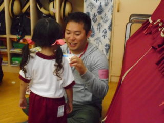 今日は保育参観を行いました。生憎のお天気で、室内での活動になりました。