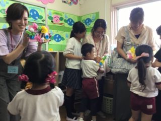 お家の人がずっと一緒に遊んでくれ、子どもたちはとてもうれしそうでした。